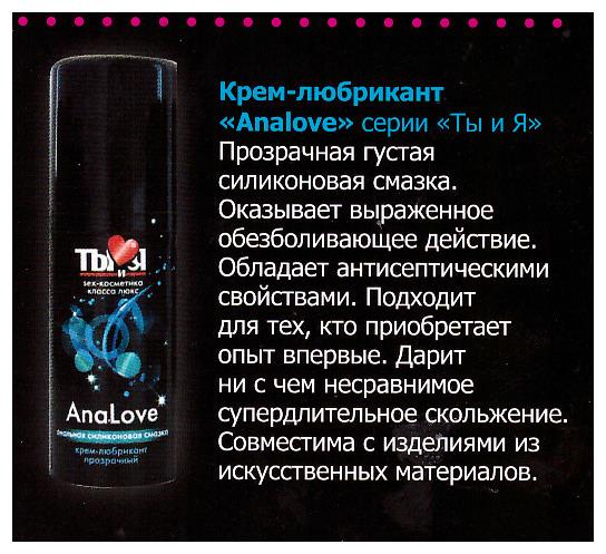 Анальный крем-лубрикант с обезбаливанием и супердлительным скольжением для двоих. Густая водно-силиконовая способствует легкому безболезненному анальному проникновению и обладает антисептическими свойствами. Супердлительное скольжение. Совместим с изделиями из искусственных материалов. Применение : нанести на участки тела требующие смазывания перед половым актом.  Дозировка подбирается индивидуально.  Упаковка : флакон-диспенсер 50 гр.  Страна Россия. Производитель: Лаборатория Биоритм.