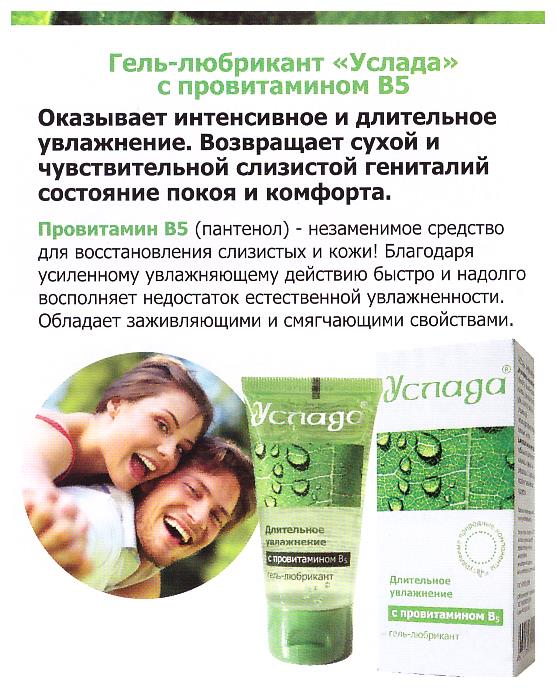 Увлажняющий гель-лубрикант с провитамином В5 (пантенол Д) для двоих . Благодаря витамину В5 происходит усиленное восстановление и увлажнение слизистых. Обновляет ткани повышает эластичность слизистых влагалища , увеличивает выделение собственной смазки, устраняет запах. Хорошо имитирует естественную женскую смазку. Обеспечивает нежное проникновение, длительное скольжение и сохраняет целостность слизистых . Применение : перед интимной близостью нанести тонким слоем на половые органы. Для деликатного ухода за слизистой нанесите на вход во влагалище 1-2 раза в день после гигиенических процедур. Одобрено гинекологами УГМУ Минздрава РФ. Упаковка : туб 120 гр. Страна Россия . Производитель Лаборатория Биоритм.